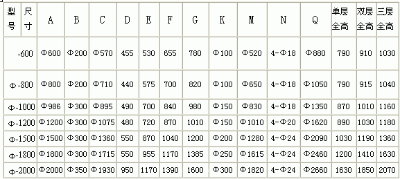 XZS系列旋振篩技術參數簡表:
